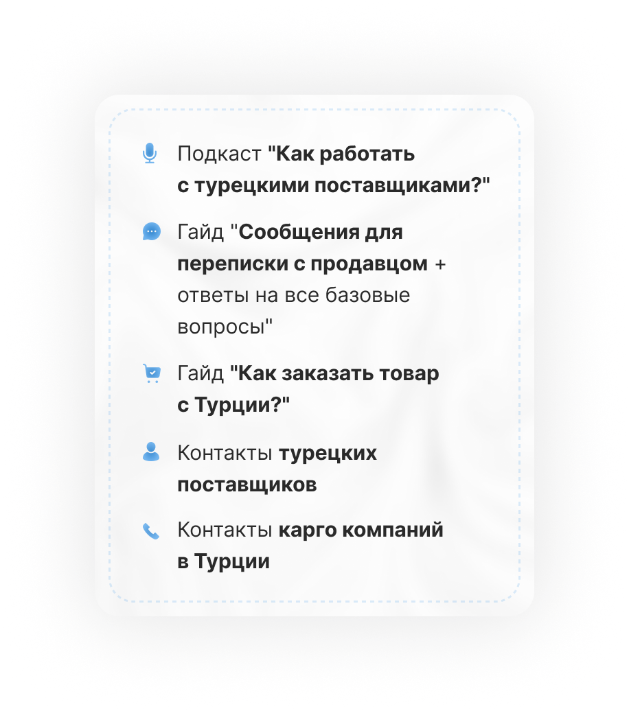 Чат поставщиков с инструкцией для заказов товаров из Турции